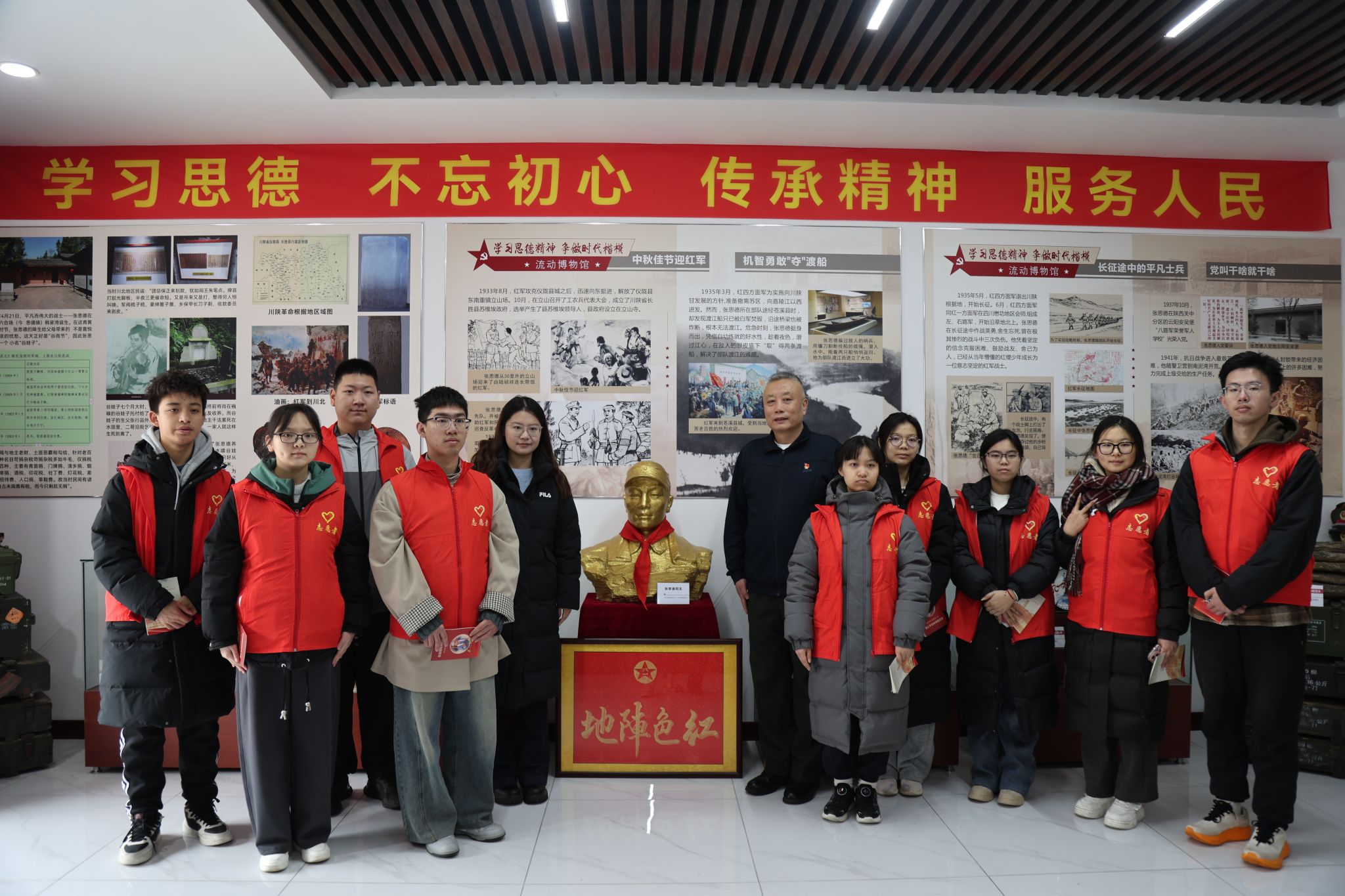 张思德同志是全心全意为人民服务的典范,毛泽东主席在《为人民服务》一文中对其精神给予了高度评价。作为受邀参加仪式的高校代表,管理学院的志愿者们身着统一红马甲,认真聆听前辈讲述的张思德事迹、参观馆内展品、阅读文献资料,深刻领悟张思德精神中所蕴含的“为人民服务”的力量。学院2024级学生谭笑表示,“作为新时代的大学生志愿者,我们更要接过前辈的接力棒,在校园和社区服务中践行这种无私奉献的精神。”