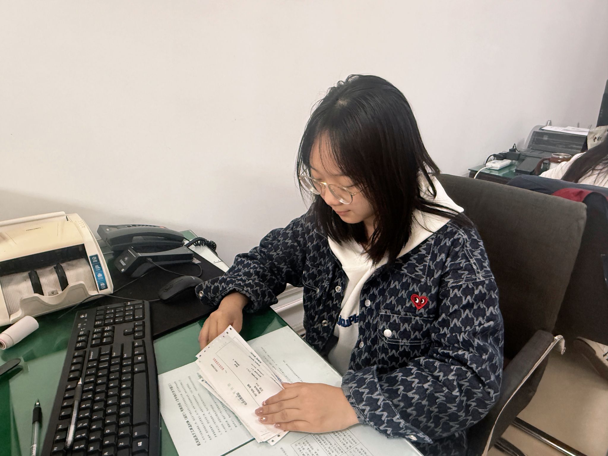 以专注为要,打磨服务技能。2025级工商管理类学生刘珈如走进山西省晋城市晋能控股装备制造集团有限公司通信分公司机关通信站营业厅,在收费岗位上开展实践锻炼。从陌生的操作系统到严谨的财务流程,从基础的业务知识到规范的窗口服务,她在师傅的耐心指导下,逐步熟悉了POS机使用、线上对账、宽带转账等业务技能。营业厅作为服务用户的第一线,她每天面对不同需求、不同年龄的群众,始终保持耐心与热情,认真办理每一笔业务,仔细核对每一组数据,用心解答每一个疑问,在忙碌的工作节奏和突发问题中学会了沉着冷静、高效处理,深刻理解了“细致、准确、负责”对基层服务岗位的重要意义,体会到任何岗位都有其价值,任何工作都值得用心对待。
