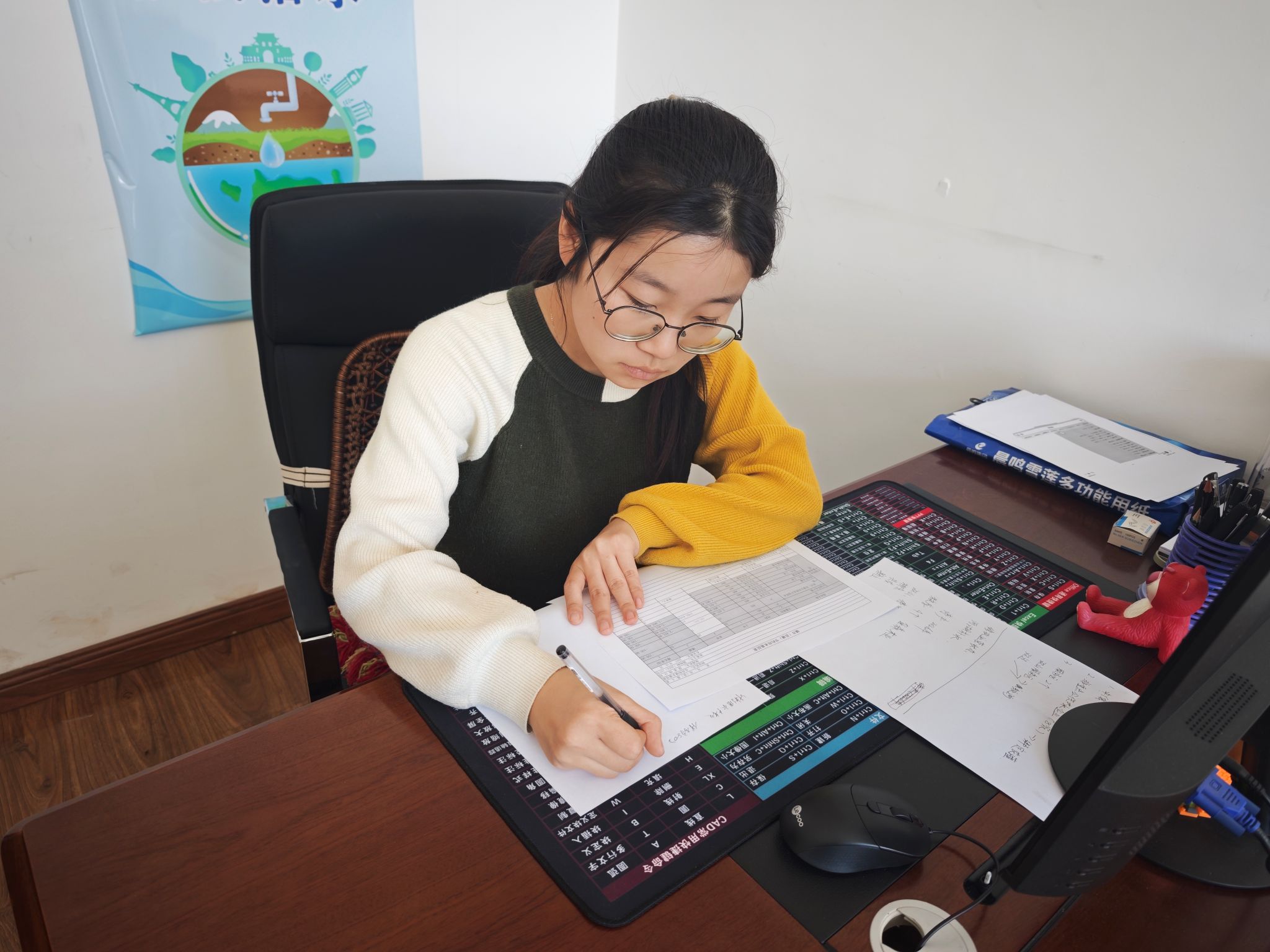以责任为重,守护水利安澜。2025级电子商务专业学生曹佳怡走进当地水利局,在办公室资料整理与一线设施巡查中触摸水利工作的温度与重量。她参与畜牧场水资源管控资料梳理,逐一核对取水许可手续、用水定额执行情况,排查水资源浪费隐患;负责居民用水量统计,对不同区域、不同户型的用水数据进行分类汇总,深刻意识到每一组数据都关系到水资源的科学调配;代表水利局参加水资源保护主题展览,向群众讲解节水护水知识,锻炼沟通表达能力;参与网上平台水资源监管,学习操作水利监管线上平台,感受科技赋能水利工作的力量。通过关注长江保护法实施五周年动态,她更深刻认识到水利法治建设在守护江河安澜中的重要作用,在实践中培养了严谨细致的工作态度和责任担当。