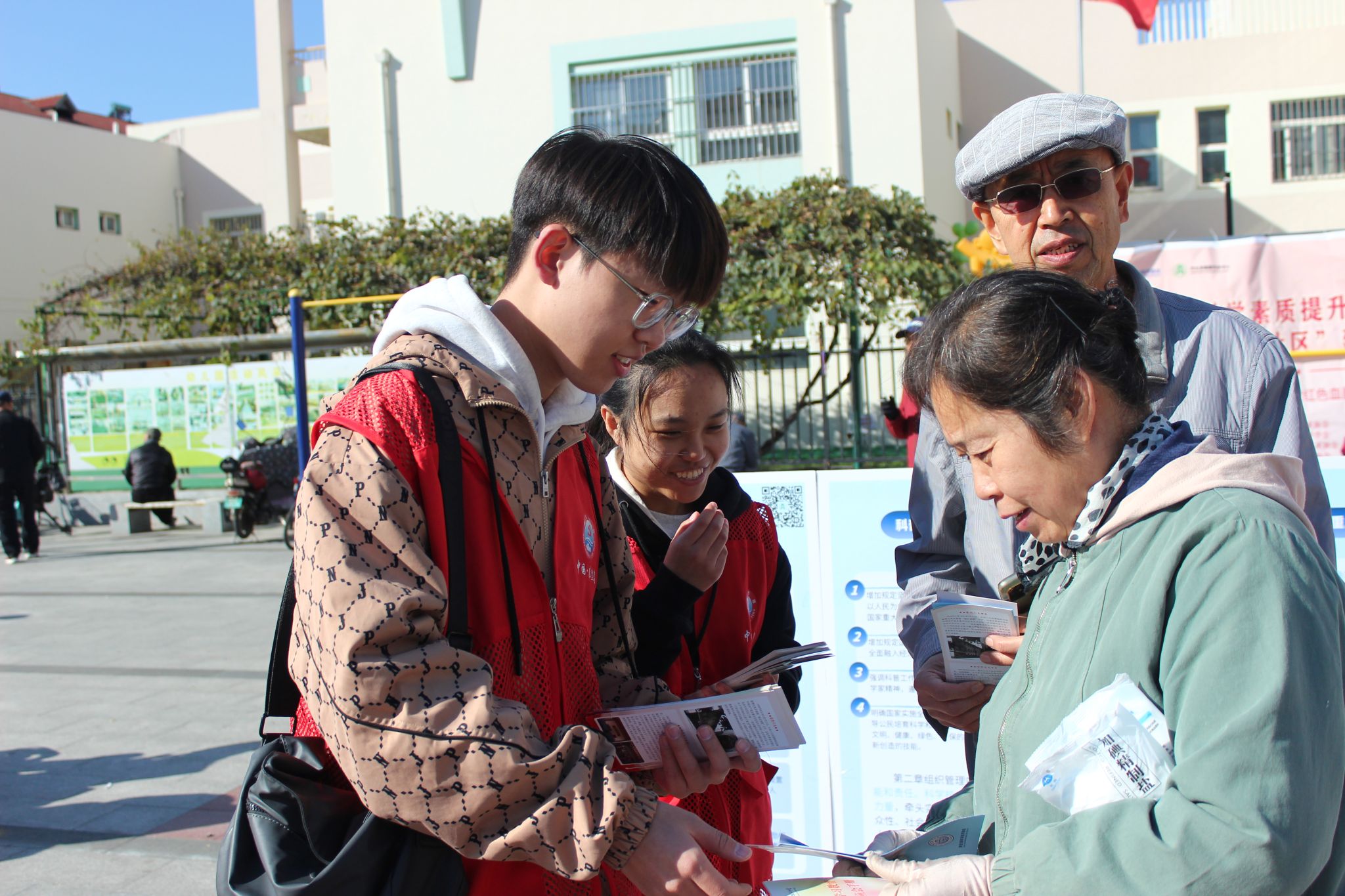志愿者们化身“科普宣传员”,围绕老年群体的生活实际和健康需求,耐心细致地为爷爷奶奶们讲解科普知识手册内容,将复杂的科学知识转化为通俗易懂的语言,有效提升了老人们的科学素养与健康意识。