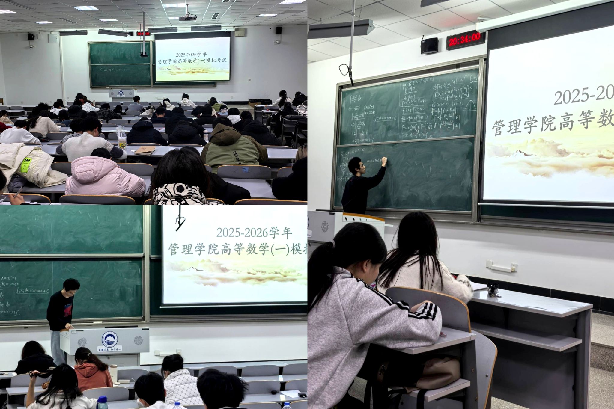 为迎接即将到来的期末考试,帮助同学们系统梳理复习内容,12月24日晚,管理学院于工学馆330教室举办了《高等数学(一)》期末模拟测试与答疑活动。本次活动邀请了2024级周美旺和蔡乐彦两位同学负责现场习题解析与答疑辅导。