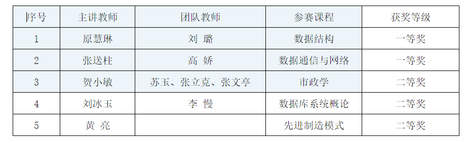 经过管理学院初赛,推荐原慧琳参加高级职称组比赛,张送柱等五名教师参加中级职称组比赛。通过紧张而精彩的决赛环节后,又经过校内公示、报主管校长同意,我院教师(团队)共获得一等奖两项、二等奖三项,学院获得优秀组织奖。